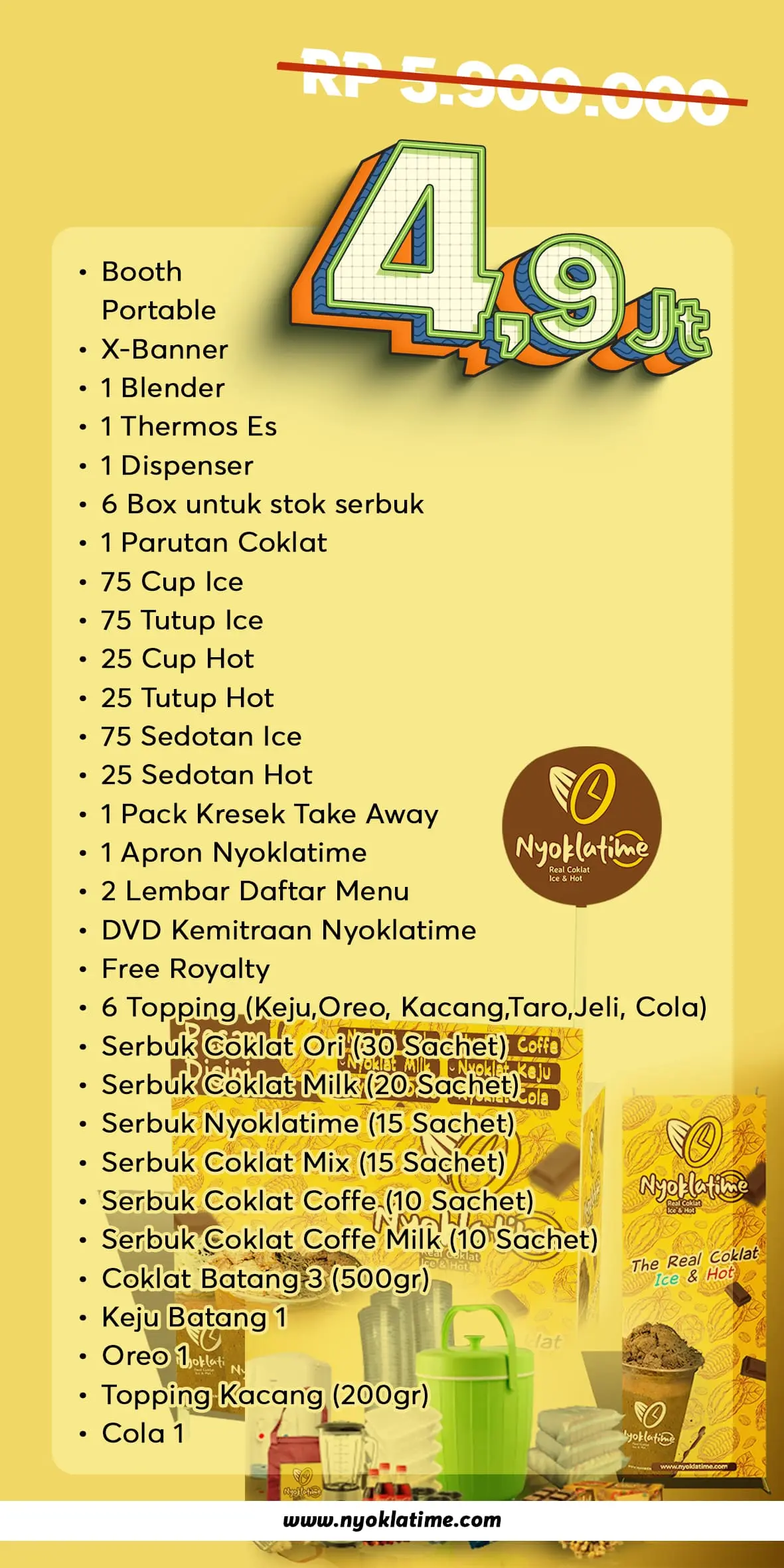 Nyoklatime merupakan salah satu bisnis waralaba minuman coklat berkualitas yang selalu menjadi favorit para kalangan milenial.